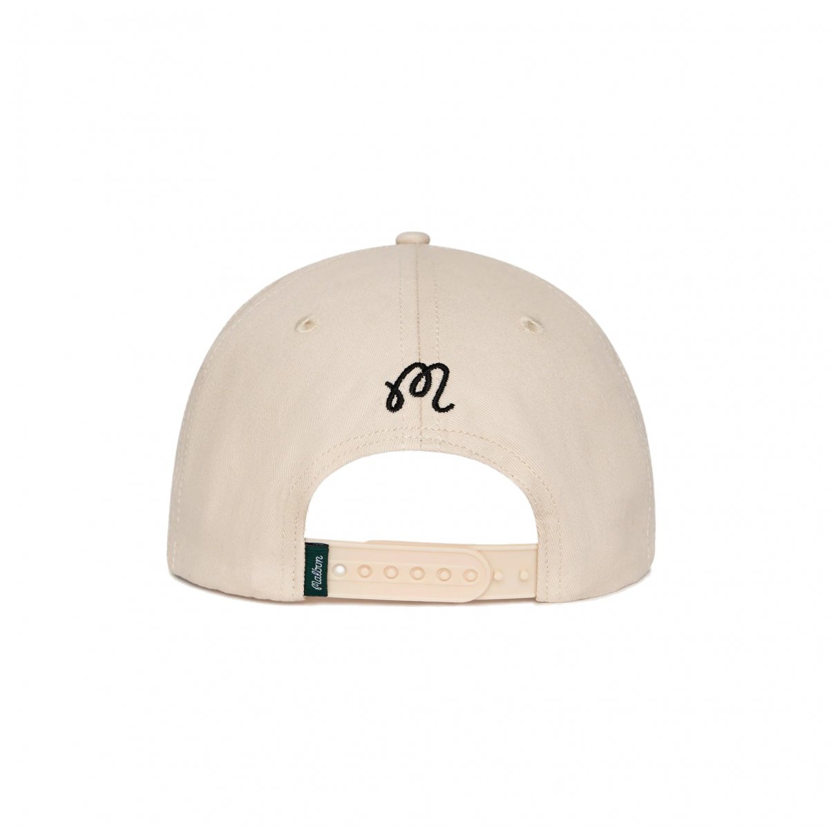 Embroidered M script logo on back